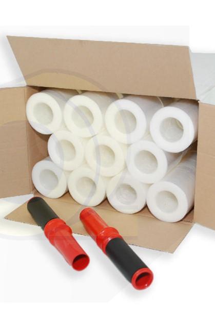 | 02-9090 | Stärke: 10 µ Qualität: Castfolie Breite: 430 mm Länge: 600 m Gewicht: 2,37 kg (brutto) Palette: 240 Ro.* * inkl. wieder verwendbarer Abrollhilfe. |