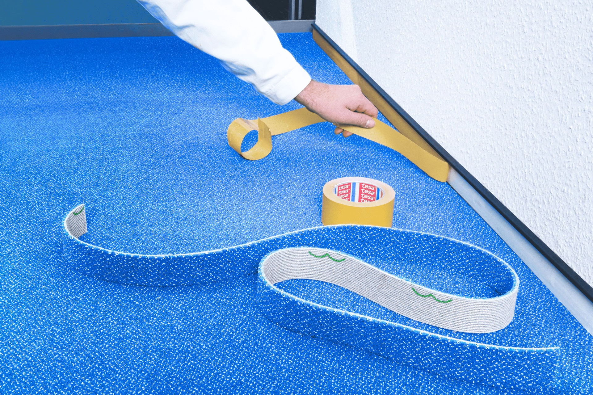 Das doppelseitige Verlegeband tesa® 51960 besteht aus einem PP-Film und einer Klebmasse aus modifiziertem Acrylat. Es eignet sich für Fachhandwerker, die Teppichböden mit Schaum- oder Textilrücken professionell und sicher verlegen möchten.