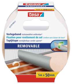 Das gewebeverstärkte und beidseitig klebende tesa® Teppichklebeband eignet sich ideal zum Verlegen von Teppich- und PVC-Bodenbelägen auf vielen, insbesondere auf empfindlichen Untergründen wie Laminat. Dank der innovativen tesa®-Klebetechnologie garantiert das lösungsmittelfreie Teppichklebeband einen sicheren Halt, lässt sich sogar mit der Hand verarbeiten und problem- und rückstandslos wieder entfernen.